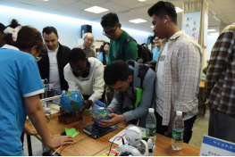 照片3 第26届本科生课外研发成果展 拉开帷幕 | 照片4 三支点小球感知平台 吸引着大家的目光 |