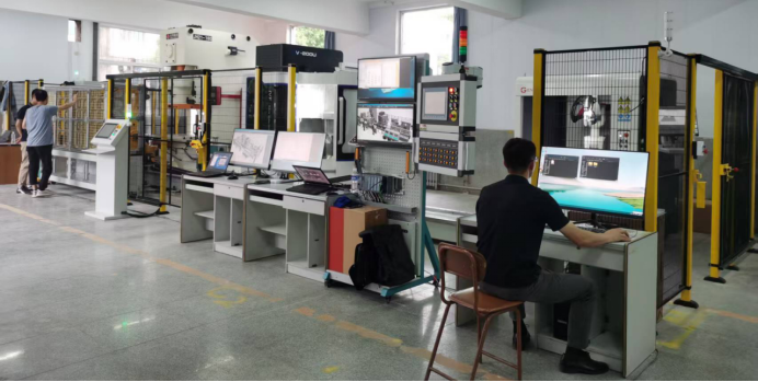智能制造示教产线,面向山西省制造产业的特色、充分考虑太原理工大学机械工程学科优势、发展规划和专业设置,结合数字化工艺技术发展现状和趋势,以满足机械工程学院人才培养实践教学及双创为目标,通过提炼实际生产制造过程的关键工艺步骤流程,将主要加工工艺、自动化设备和工业级数字化技术进行深度集成,构建一条具有高度自动化、数字化的智能制造产线,形成由物理硬件设备、工业级软件和实验教学课件组成的数字孪生示教性、交互式结合的产线。通过软硬结合的工艺单元设置,为机械设计制造及其自动化、机械电子工程、车辆工程和机器人工程等本科专业的实践教学提供比较全面的能力覆盖,并支持各专业双创活动开发和交叉复合能力拓展。