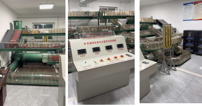 实验室规模精巧,功能体系完整,核心配置矿井通风仿真安全监控实验系统,划分有仿真操作区、参数监测区、系统调控区、课程实训区等功能板块,且配套设备齐全,实训工具完善,可全面支撑《矿井通风与安全》、《矿井智能通风与安全》等本科核心课程实验教学任务。通风仿真实验室有效解决了井下现场实训安全门槛高、场景难复现、实操机会有限的难题,为学生搭建了安全可控、可反复演练的专业实验平台,对提升学生工程实践能力与专业核心素养具有重要作用。在这里,学生可将课堂所学的理论知识转化为实操能力,直观掌握矿井通风安全的核心原理与技术要点,在试验操作中夯实专业基础,在交流探索中激发创新思维。如下是实验室的总览。