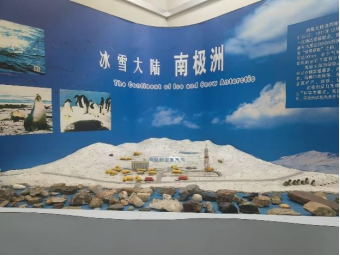 第七部分为南极洲板块是窦银科教授的两次南极考察后,设置的南极洲板块有珍贵的企鹅卵、南极水及地衣石等珍贵标本,还有科考飞机残骸和科考队员签字。