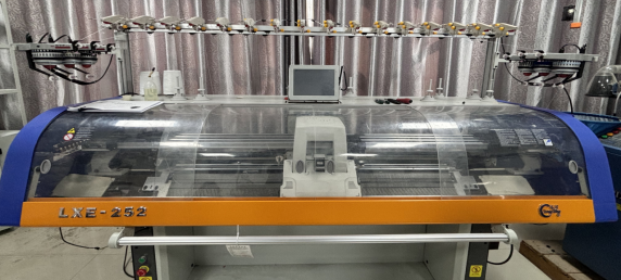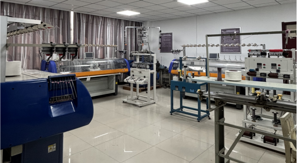 本区域配备3台不同型号的现代化电脑横机,作为全自动针织核心设备,是实验室开展针织结构创新、智能纺织品开发的核心平台。设备在编织过程中可精准实现成圈、集圈、浮线三种基本编织状态,并能灵活完成翻针、移圈、加针、减针、摇床、脱圈等系列动作,通过不同针法的组合变化,可编织出丰富多样的肌理、图案与造型外观。