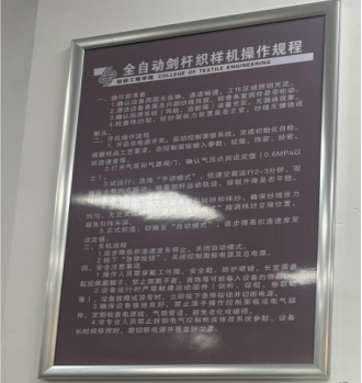 全自动剑杆织机是纺织实验室用于小样试织、新产品开发的核心设备,属于小型化的剑杆织机,可以在实验室小批量试织新面料,验证花型、工艺和纤维性能,避免大生产浪费。全自动剑杆织机共有2台,具体实验操作如图所示。同学们在使用时要注意自身以及设备安全。