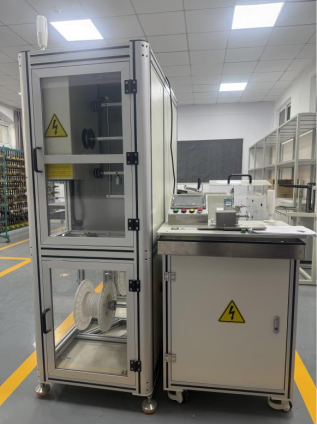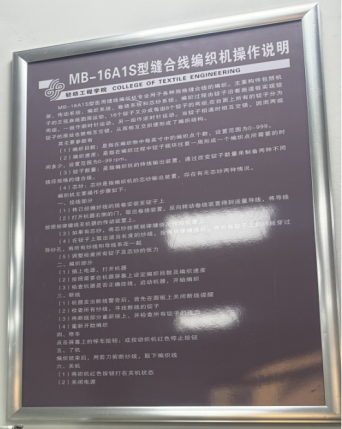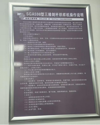 这是一套实验室级三维剑杆织机,用于制备高性能三维立体织物(如碳纤维、玻璃纤维复合材料预制体),主要由纱线供纱系统和织造主机两部分组成。这套设备是先进纺织复合材料的实验室制备平台,区别于传统平面织物,它能制备出无分层、整体性强的三维结构材料,在航空航天叶片、防弹装备、新能源部件等领域有重要应用价值。型号及操作说明如图所示。使用时需要注意使用者自身以及三维剑杆织机的安全。同学们使用三维剑杆织机时需要联系值班同学帮忙。