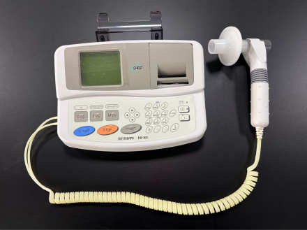 实验室同时具备肺功能仪(CHESTGRAPH HI-101),可精准测量用力肺活量(FVC)、1 秒用力呼气容积(FEV1)、分钟最大通气量(MVV)、肺活量(SVC)等核心肺功能指标。在教学中可用于全面评估人体静态与动态肺功能,对比不同运动强度、不同训练周期后肺功能指标的变化,帮助学生深入理解运动对通气功能、换气功能的影响机制,为运动能力评估、呼吸康复训练提供专业检测手段。
