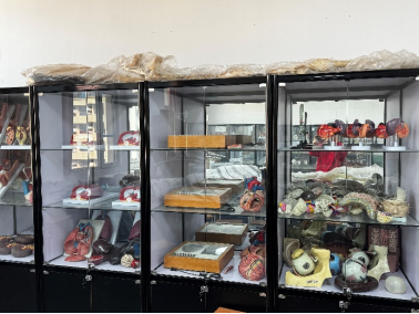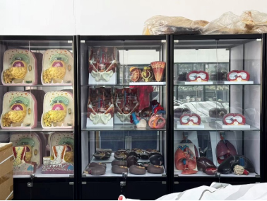进入实验室,首先映入眼帘的是标本陈列观察区。这里配置了多组高透光性展示柜,有序陈列着精心保存的各类教学标本。该区域按照人体九大系统,重点分为骨与骨连结展示单元(展示人体全身骨骼及各类关节结构)、骨骼肌展示单元(展示人体主要肌肉群的形态、起止点与配布)、内脏系统展示单元(展示消化、呼吸、泌尿系统主要器官的位置与毗邻关系)以及心血管系统展示单元(展示心脏及主要血管的走行)。尤为珍贵的是,区域内设有一位“大体老师”(遗体捐献标本),以其真实、完整的形态,直观呈现人体结构的奥秘,是学生进行系统解剖学观察与学习的核心教具。此外,实验室还配备有人体骨骼框架模型、肌肉附着的骨骼框架模型等,便于学生从宏观上把握人体的支架与轮廓。