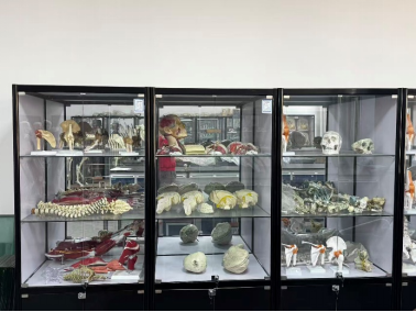 实验室内根据教学功能与标本类型,科学划分为标本陈列观察区与理论实践研讨区两大核心区域,动静分离,布局合理,能够满足从理论讲解到实物观察,从模型拆解到小组讨论的全流程教学需求。